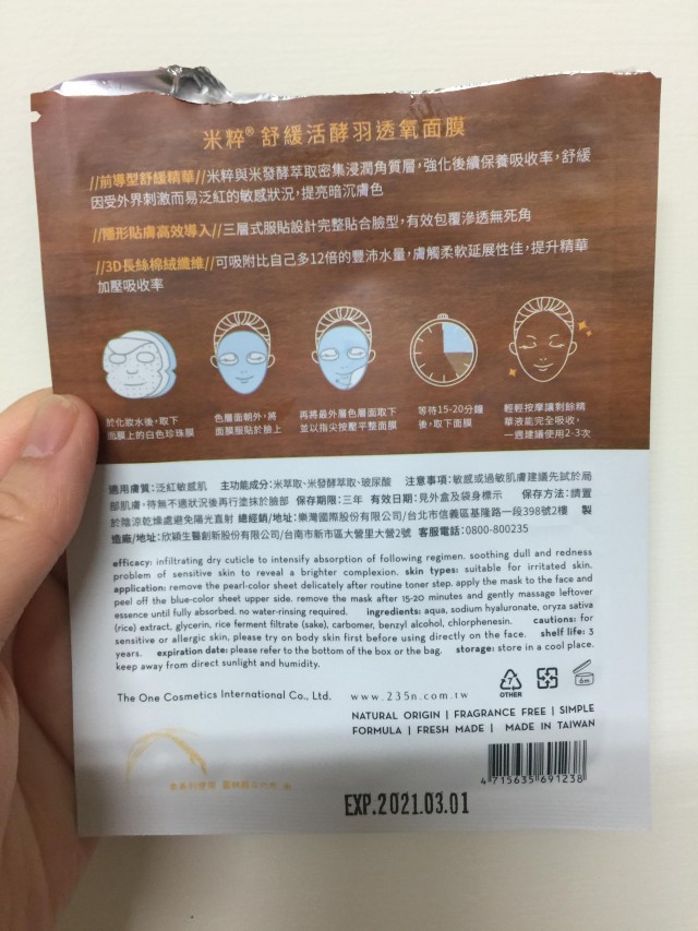 分享 23.5北緯研製 米萃舒緩活酵羽透氧面膜