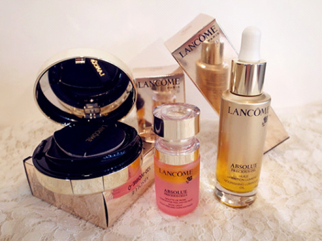 看著化妝台上金光閃閃的蘭蔻絕對完美保養