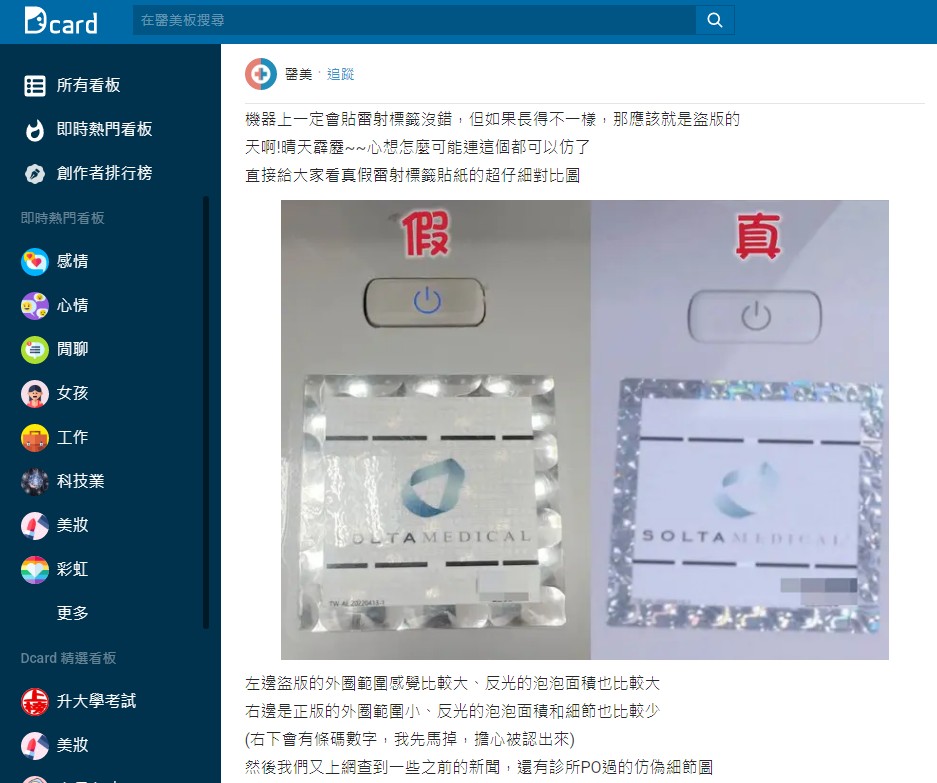 環特流 2025-05-29 15:17:18 鳳凰電波假貨新手法 替身診所超不OK... #幫高調鳳凰電波假貨又出現新手法了......除了雷射標籤造假以外,還會謊稱自己是原廠診所,當天再帶你去奇怪的地方打(不是同一間診所)這種醫療糾紛(很像詐騙)連找警察也很難解決這篇是轉自Dcard的【#討論 快被嚇死!!朋友打到貼假標的盜版鳳凰電波...】這一篇,想看原文的朋友可以自行搜尋