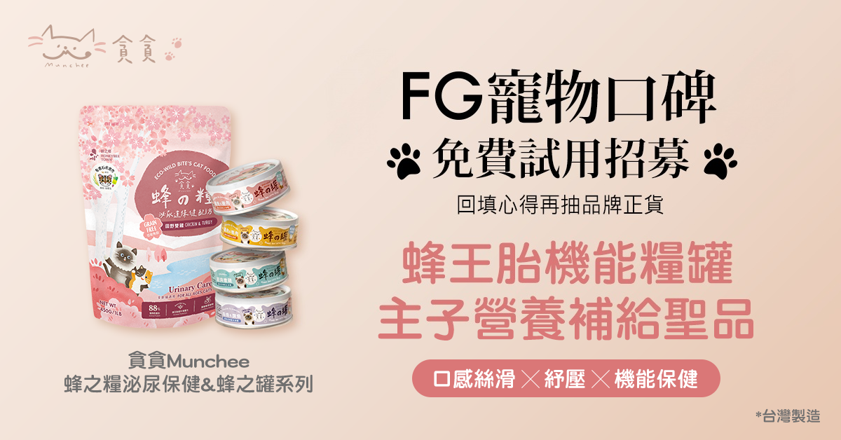 ★貪貪生態貓食Munchee 蜂之糧泌尿保健&蜂之罐機能主食罐 >立即參加