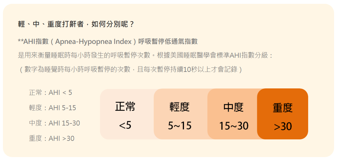 ‧單純打呼者:沒有明顯睡眠呼吸中止但鼾聲影響睡眠或伴侶休息者。