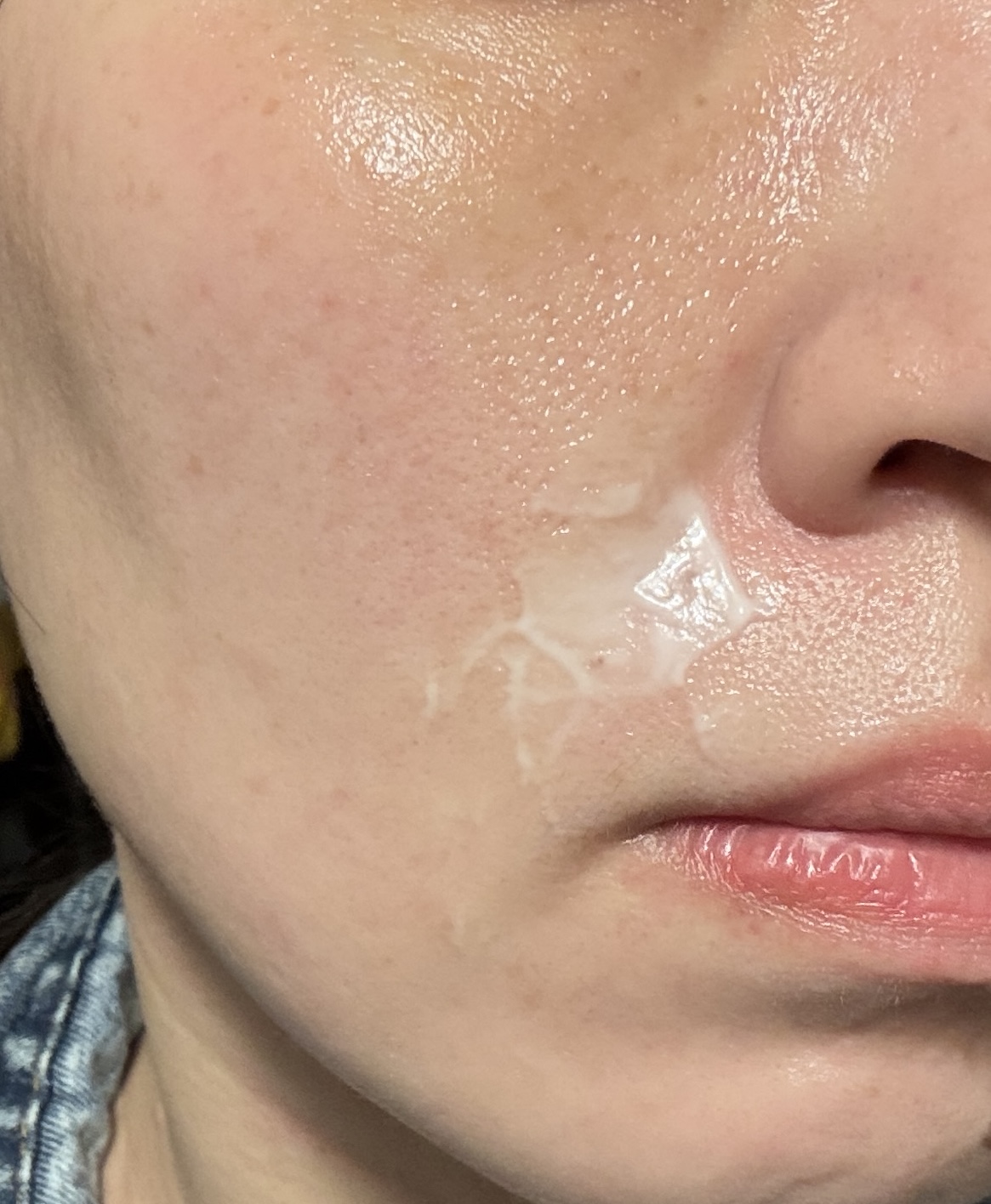 有時天氣驟冷乾燥,也會在顴骨兩頰處、嘴角、法令紋的地方塗上一層厚厚的修護乳,敷一下再推勻,顴骨部位的光澤感十足,法令紋似乎也變淺了一些。