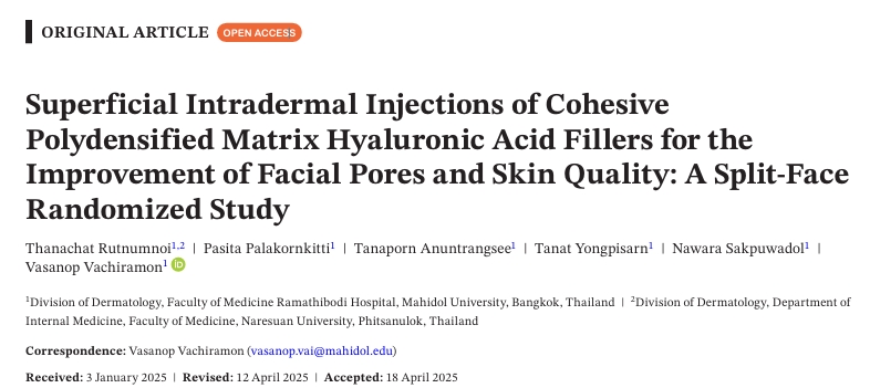 “根據文獻,將不同性質玻尿酸利用中胚層注射於30名臉部毛孔粗大的患者(隨機分配進行分臉測試) 3次療程,各間隔 4 週;結果顯示利用「保柔緹玻尿酸」,皮膚保濕度從基線到第 32 週(8個月)均有所改善。